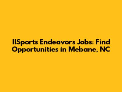 IISports Endeavors Jobs: Find Opportunities In Mebane, NC