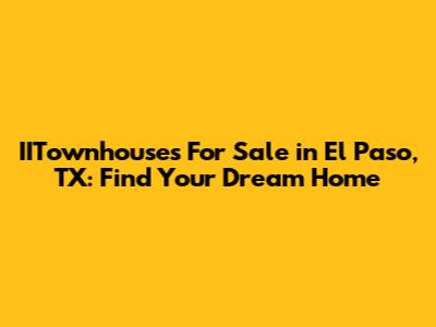 Are you looking for IITownhouses for sale in El Paso, TX? You've come to the right place! El Paso is a vibrant city with a rich culture and a thriving real estate market. If you're considering buying a townhouse here, especially in the IITownhouses area, you'll want to know all the ins and outs. Let's dive into what makes IITownhouses a great option and how you can find the perfect one for you.