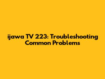 Ijawa TV 223: Troubleshooting Common Problems