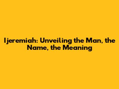 Ijeremiah: Unveiling The Man, The Name, The Meaning
