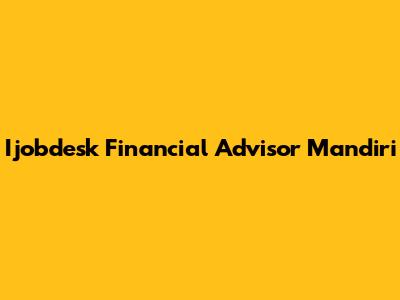 Ijobdesk Financial Advisor Mandiri: Opportunities & Insights