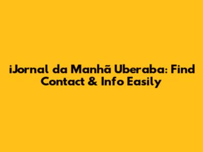 IJornal Da Manhã Uberaba: Find Contact & Info Easily