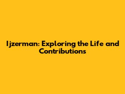Ijzerman: Exploring The Life And Contributions