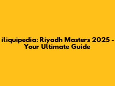 Iliquipedia: Riyadh Masters 2025 - Your Ultimate Guide