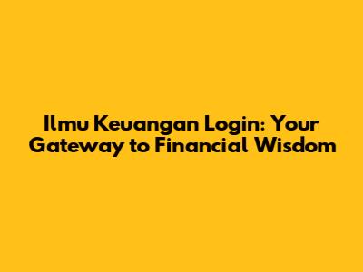 Ilmu Keuangan Login: Your Gateway To Financial Wisdom