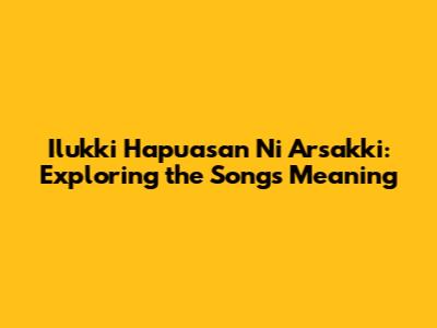 Hey guys! Ever stumbled upon a song that just hits you right in the feels? Well, let’s dive deep into one of those today: Ilukki Hapuasan Ni Arsakki. This isn't just a title; it’s a gateway to a world of emotion, storytelling, and cultural richness. We’re going to break down what makes this song so special, its lyrical depth, and why it resonates with so many people. So, grab your headphones, and let’s get started!