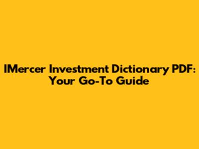 Hey guys, welcome back! Today, we're diving deep into something super useful for anyone looking to level up their investment game: the IMercer Investment Dictionary PDF. If you've ever stumbled across a financial term that made your head spin, or just want to beef up your investment lingo, this dictionary is your new best friend. We're going to break down what it is, why it's a must-have, and how you can get your hands on it. So, grab a coffee, get comfy, and let's get started on mastering those investment terms!