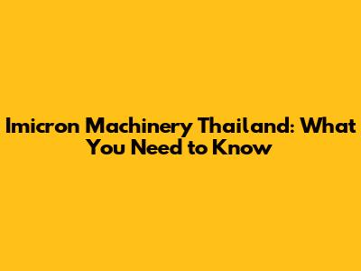 Imicron Machinery Thailand: What You Need To Know