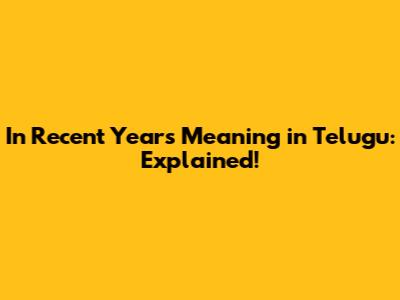 In Recent Years Meaning In Telugu: Explained!
