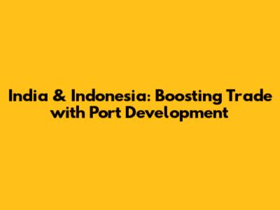 India & Indonesia: Boosting Trade With Port Development