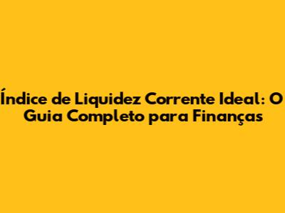 Índice De Liquidez Corrente Ideal: O Guia Completo Para Finanças