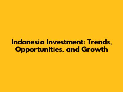 Indonesia Investment: Trends, Opportunities, And Growth