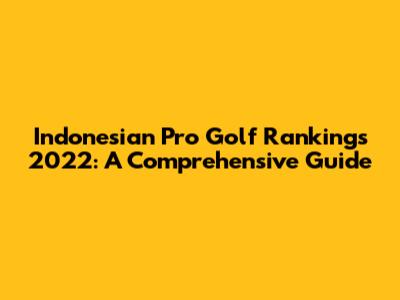 Indonesian Pro Golf Rankings 2022: A Comprehensive Guide