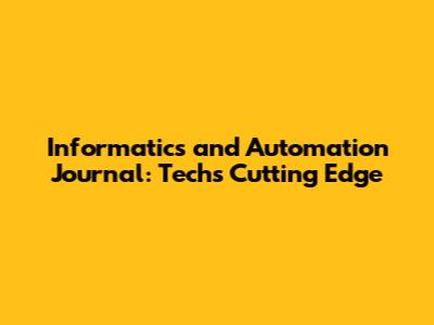 Informatics And Automation Journal: Tech's Cutting Edge