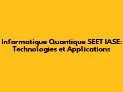 Informatique Quantique SEET IASE: Technologies Et Applications