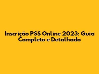 Inscrição PSS Online 2023: Guia Completo E Detalhado