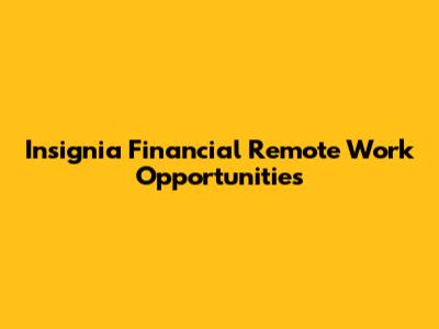Insignia Financial Remote Work Opportunities