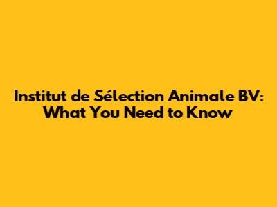 Institut De Sélection Animale BV: What You Need To Know