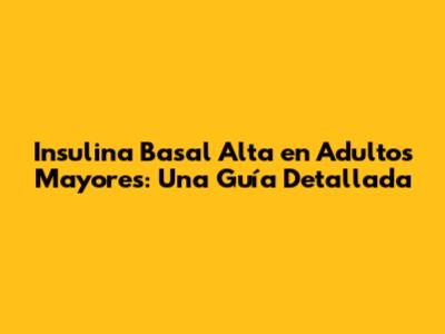 Insulina Basal Alta En Adultos Mayores: Guía Completa