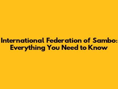 International Federation Of Sambo: Everything You Need To Know
