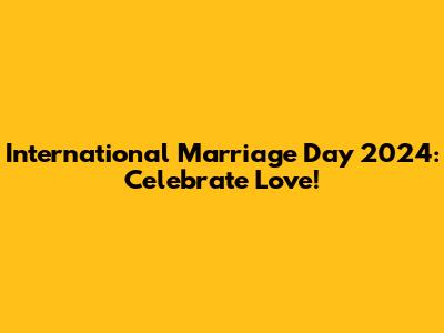 As International Marriage Day 2024 approaches, let's embrace the opportunity to celebrate love, commitment, and the beautiful journey of marriage. This day serves as a powerful reminder of the importance of nurturing our relationships and cherishing the bond we share with our spouses. Whether you choose to celebrate with grand gestures or simple acts of kindness, the essence of the day lies in expressing your love and appreciation in a meaningful way. Reflect on the history and significance of International Marriage Day, and let it inspire you to recommit to the values that make marriages thrive. Open communication, mutual respect, quality time, and forgiveness are essential ingredients for a lasting and happy relationship. Take the time to connect with your partner, listen to their needs, and express your feelings openly and honestly. Plan a special activity, exchange heartfelt gifts, or simply spend quality time together, cherishing the moments that make your marriage unique. Remember that marriage is a journey, not a destination. It requires continuous effort, understanding, and commitment. Embrace the challenges and celebrate the triumphs together, and never stop learning and growing as a couple. As you celebrate International Marriage Day, let's also extend our support to other couples in our community. Encourage them to prioritize their relationships, seek help when needed, and celebrate the joys of marriage. By promoting strong and healthy marriages, we contribute to stronger families and a more resilient society. So, mark your calendars for International Marriage Day 2024, and prepare to celebrate the love that binds you together. Let this day be a reminder of the beautiful gift of marriage and the importance of nurturing it with love, respect, and commitment. Cheers to love, laughter, and a lifetime of happiness together! Make this International Marriage Day unforgettable by focusing on what truly matters: the love you share with your spouse.
