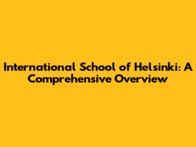 International School Of Helsinki: A Comprehensive Overview