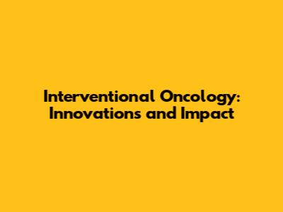 Interventional Oncology: Innovations And Impact