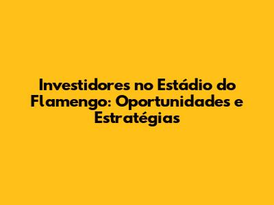 Investidores No Estádio Do Flamengo: Oportunidades E Estratégias