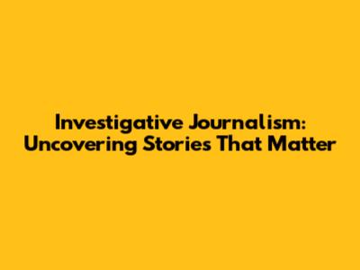Investigative Journalism: Uncovering Stories That Matter