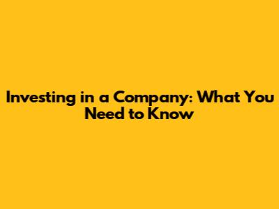 Investing In A Company: What You Need To Know