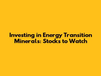 Investing In Energy Transition Minerals: Stocks To Watch