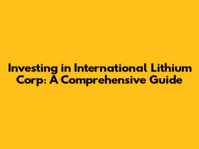 Investing In International Lithium Corp: A Comprehensive Guide