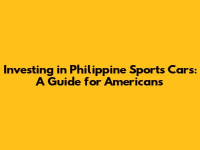 Hey guys! Ever thought about merging your love for sports cars with a savvy investment strategy? Well, if you're an American with a penchant for speed and a keen eye for opportunities, then let's dive into the exciting world of investing in Philippine sports cars. This guide is designed to give you the lowdown on everything from the potential benefits to the things you need to watch out for. Buckle up, because we're about to take a thrilling ride!