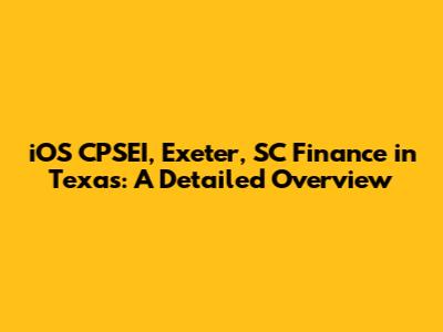 IOS CPSEI, Exeter, SC Finance In Texas: A Detailed Overview