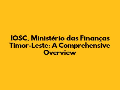 IOSC, Ministério Das Finanças Timor-Leste: A Complete Guide