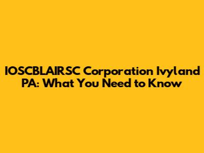 IOSCBLAIRSC Corporation Ivyland PA: What You Need To Know