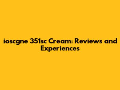 Ioscgne 351sc Cream: Reviews And Experiences