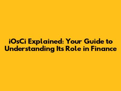 IOsCi Explained: Your Guide To Understanding Its Role In Finance