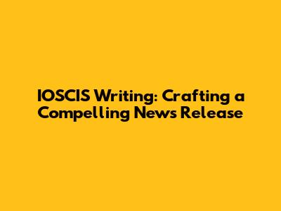 IOSCIS Writing: Crafting A Compelling News Release