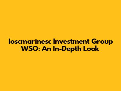 Ioscmarinesc Investment Group WSO: An In-Depth Look