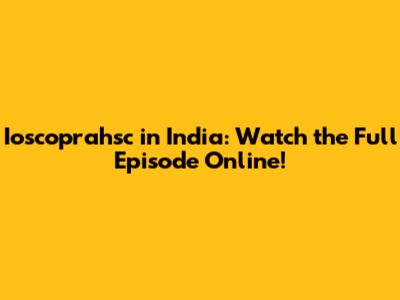 Ioscoprahsc In India: Watch The Full Episode Online!