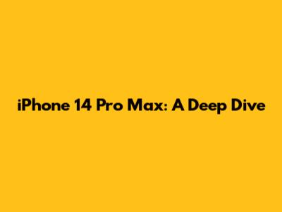 IPhone 14 Pro Max: A Deep Dive