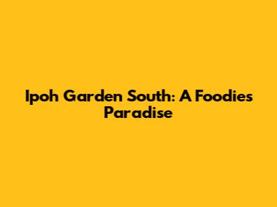 Unveiling Ipoh Garden South's Culinary Delights