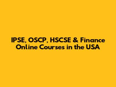 IPSE, OSCP, HSCSE & Finance Online Courses In The USA