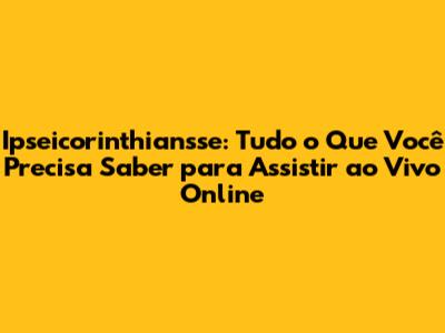 Ipseicorinthiansse: Como Assistir Ao Vivo Online
