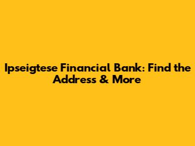 Ipseigtese Financial Bank: Find The Address & More