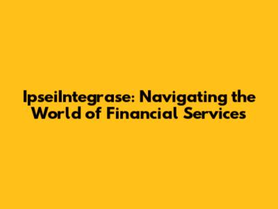 Hey guys! Let's dive into the world of IpseiIntegrase financial services! Ever felt like the financial landscape is a bit of a maze? Well, you're not alone. Figuring out investments, managing your money, and planning for the future can feel overwhelming. That's where IpseiIntegrase steps in, offering a helping hand to make things a little clearer and a lot more manageable. We're talking about a range of services designed to empower you to take control of your finances and build a brighter tomorrow. Think of it as having a financial sidekick, guiding you through the ups and downs of the market and helping you make informed decisions. We'll explore what IpseiIntegrase is all about, the kinds of services they offer, and how they can potentially help you achieve your financial goals. So, buckle up, and let's get started on this exciting journey to financial well-being!