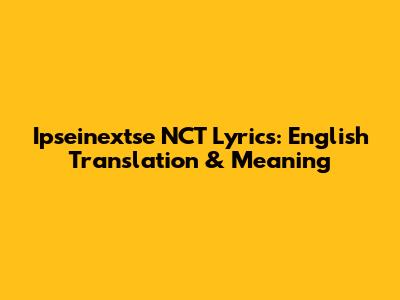 Ipseinextse NCT Lyrics: English Translation & Meaning