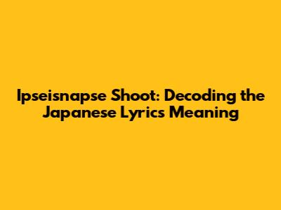Ipseisnapse Shoot: Decoding The Japanese Lyrics Meaning