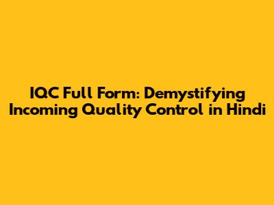 IQC Full Form: In-Depth Guide In Hindi For Quality Assurance
